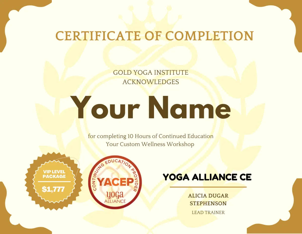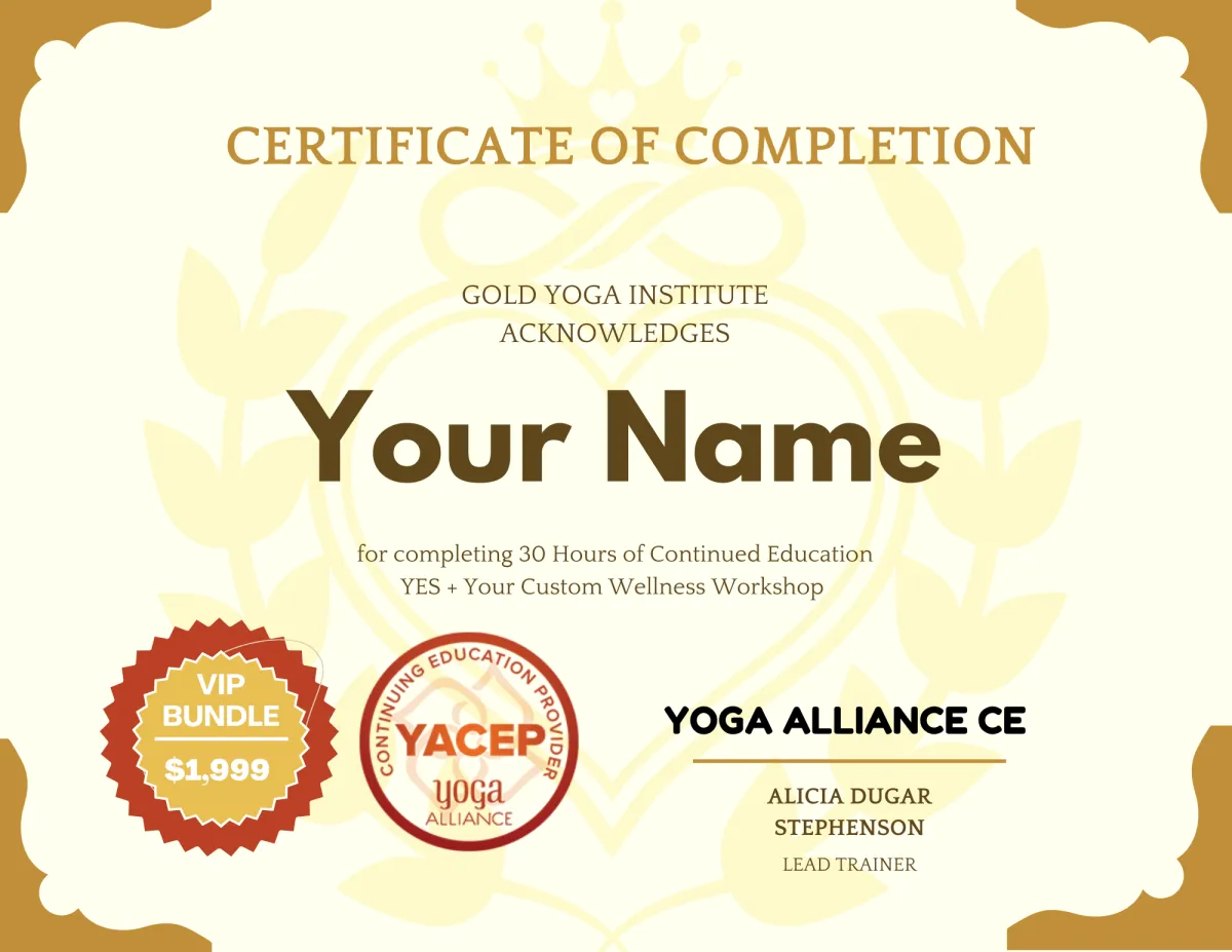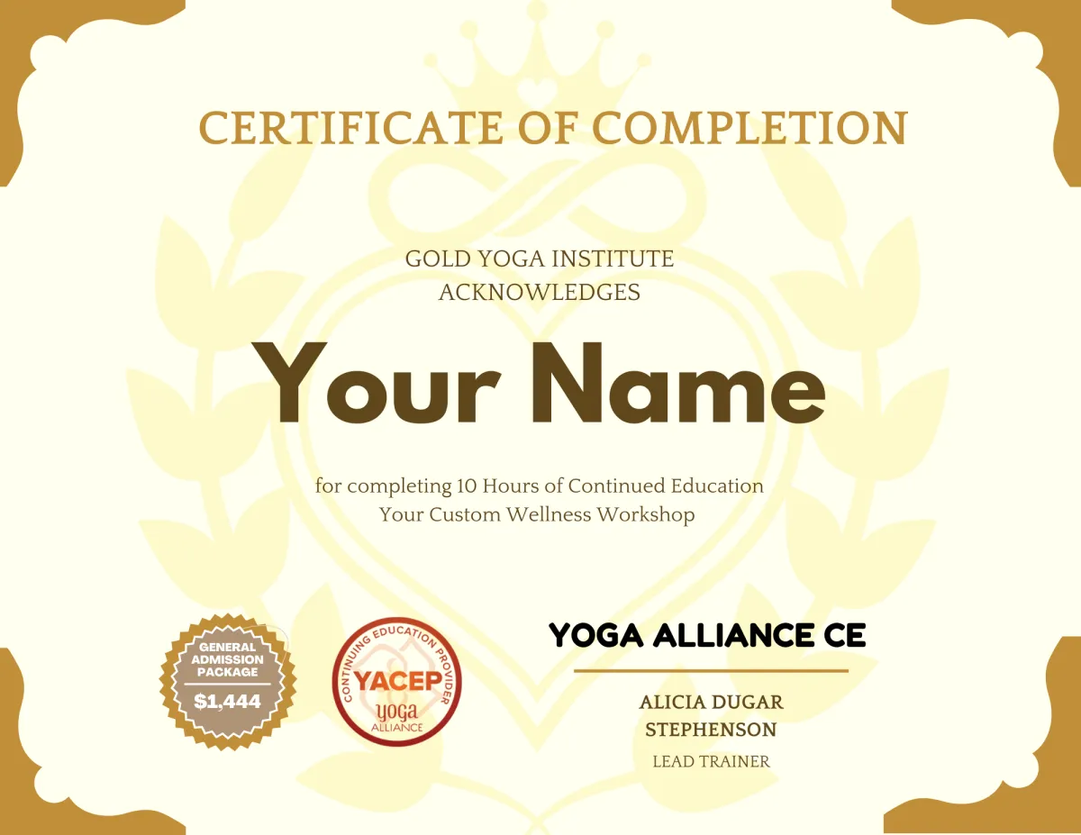 Together with the VIP access to Create Your Custom Wellness Workshop, you will be able to redeem a total of 30 Yoga Alliance Continued Education (CE) Hours.